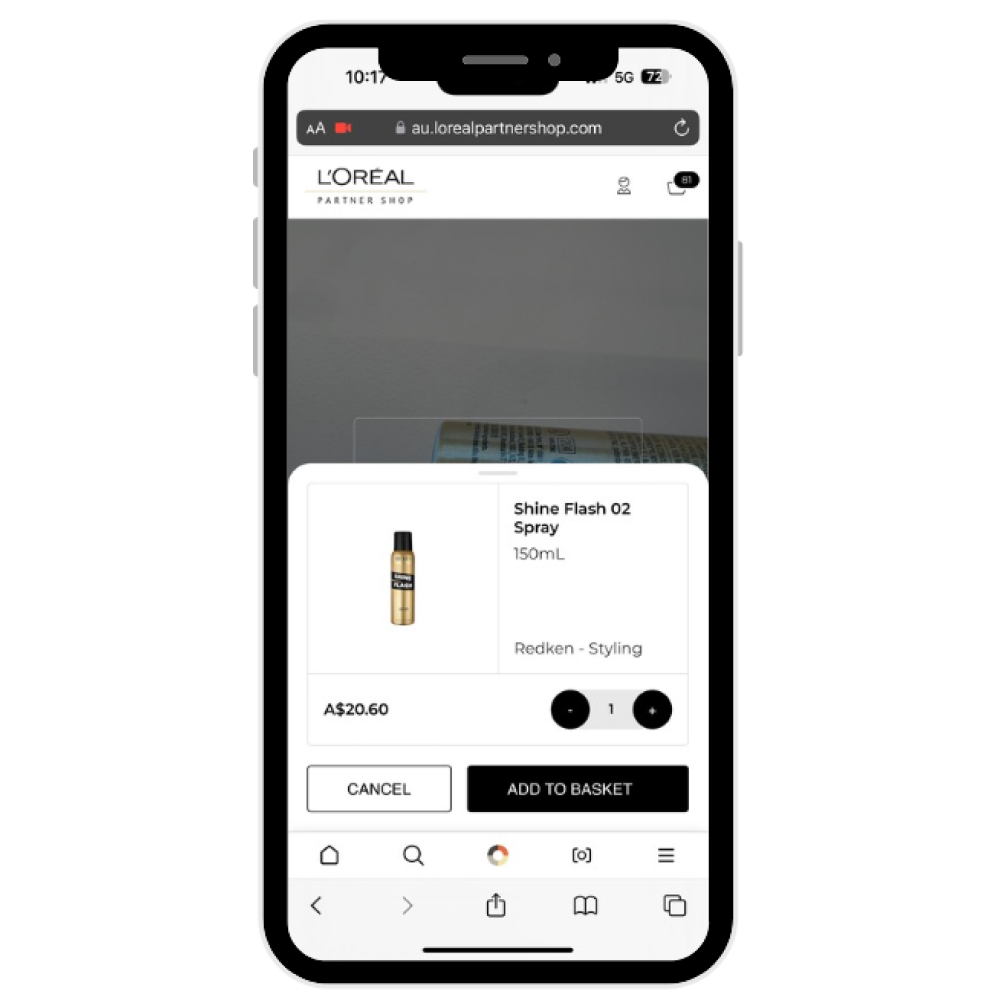 STEP 4: Once the product is identified, the pop up will appear. Simply adjust the quantity and add to cart.